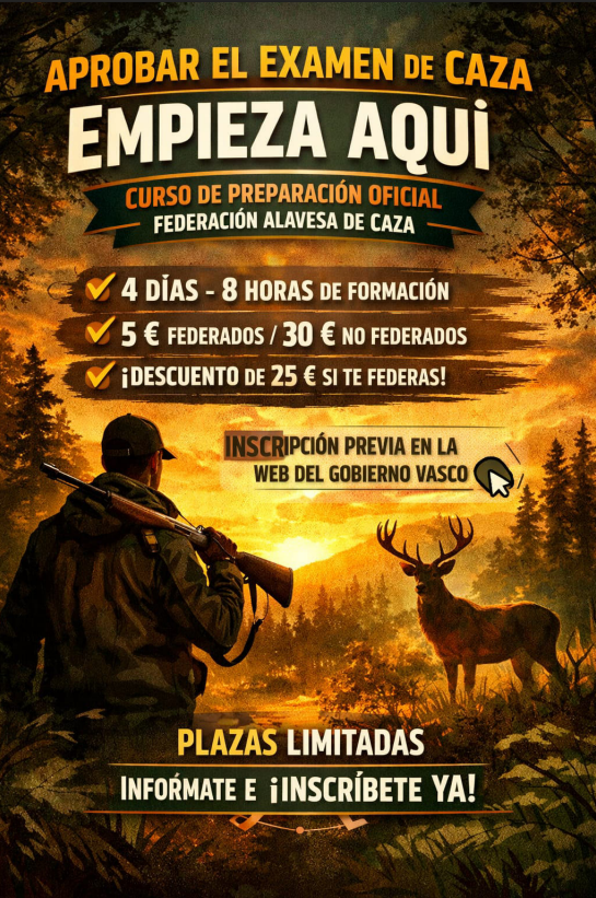 La Federación Alavesa de Caza organiza un curso oficial de preparación para el examen de caza, pensado para que llegues al examen bien preparado y con seguridad.